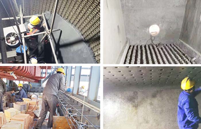 近期,鋁電解槽上廣泛采用防滲透耐火澆注料,取得了滿意的使用效果;在蒸汽鍋爐的內(nèi)襯上,使用不定形耐火材料比較早,也比較普遍。一般用鋁酸鹽水泥重質(zhì)或輕質(zhì)耐火澆注料,使用壽命理想。