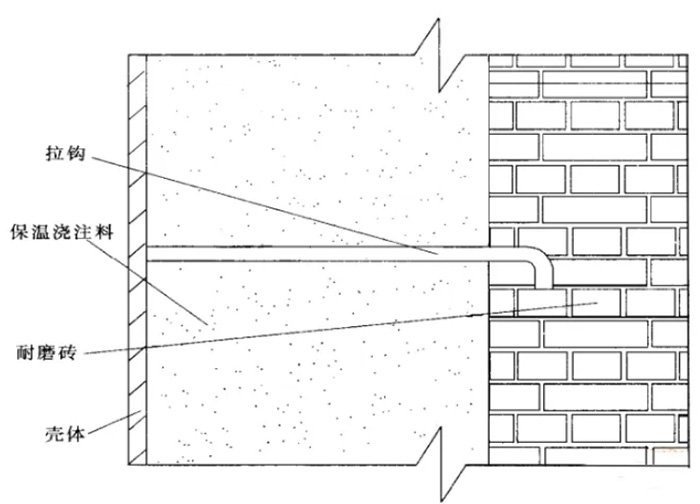 (3)采用固定抓釘和高溫?zé)Y(jié)磚的澆注料結(jié)構(gòu)形式